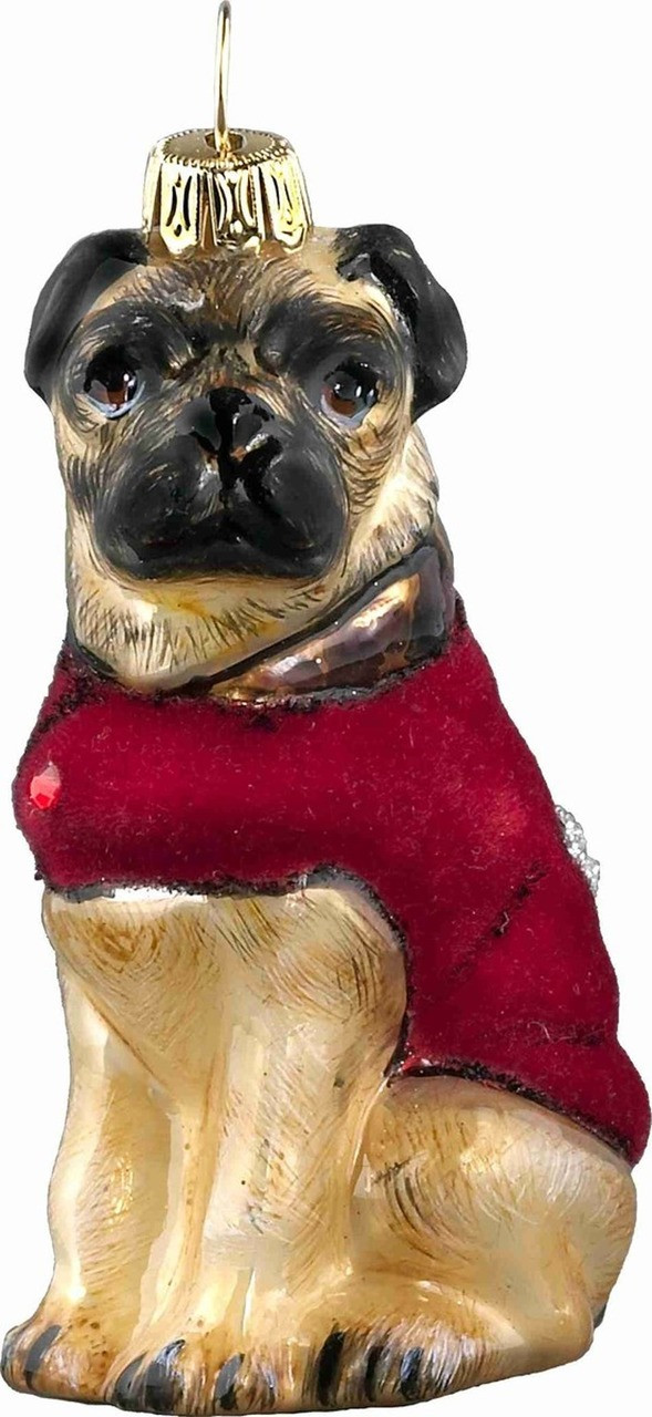 DIVA DOG Pug in Red Velvet Coat - Joy To The World Ornament