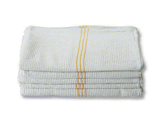 Size 15" x 18" Cotton towel with 3 Gold pinstripes for easy identification.